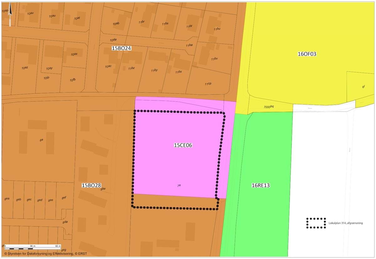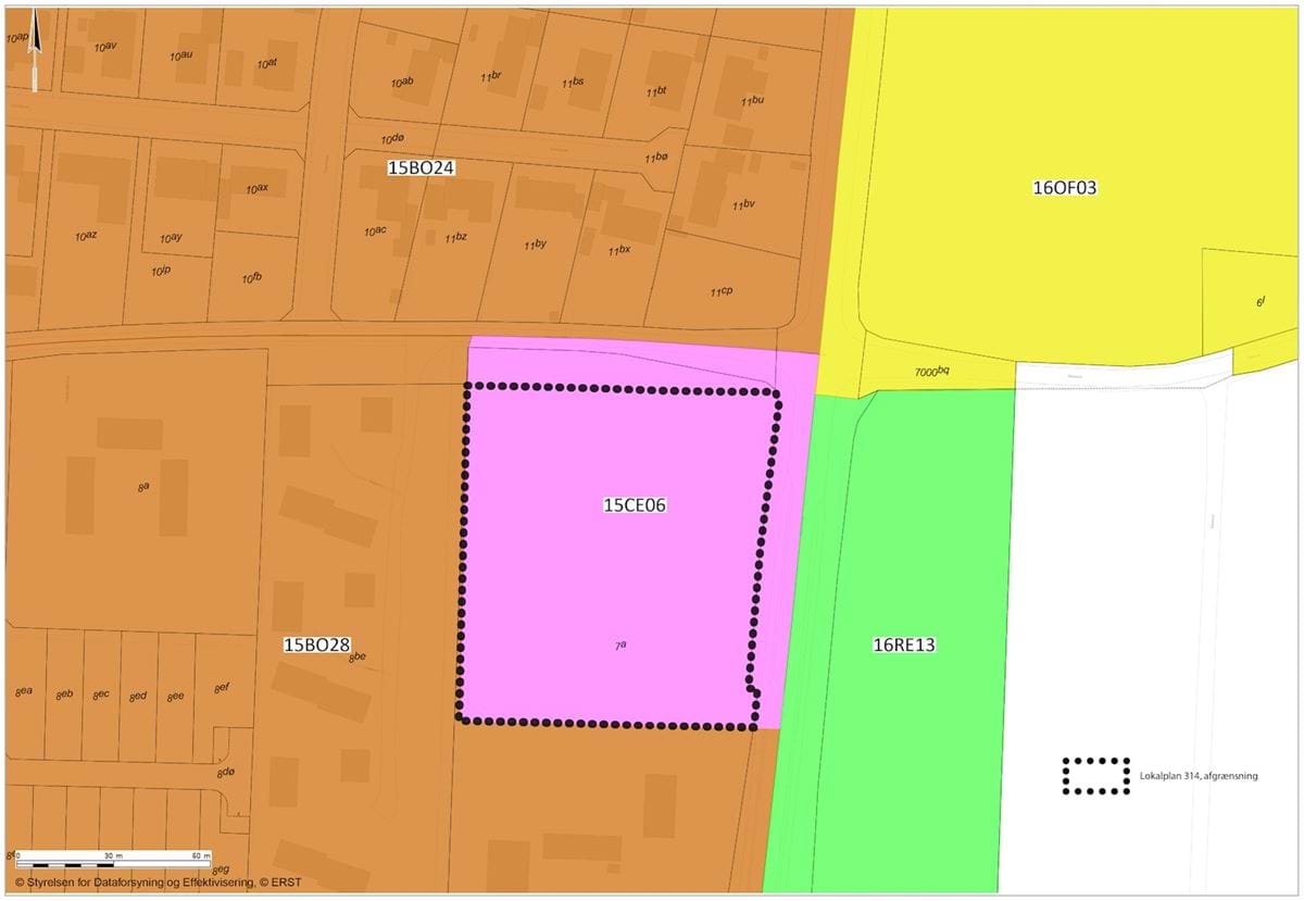 Der oprettes ikke nye rammer. Eksisterende ramme 15.CE.06 - Område til butiksformål opretholdes, men geometrien for området tilpasses. Kommuneplanrammen mod syd 15.BO.28 reduceres tilsvarende.