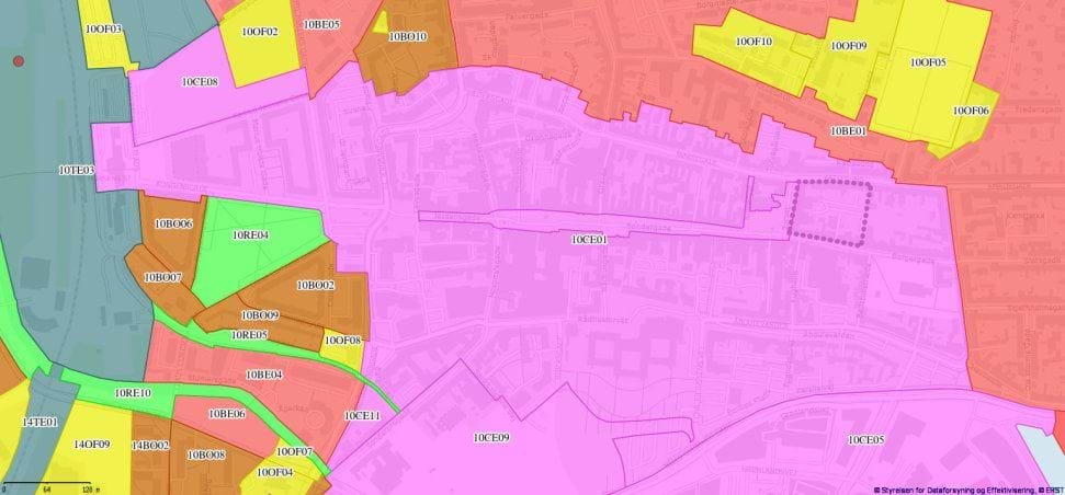 Eksisterende kommuneplanramme 10CE01 - den fulde udstrækning.