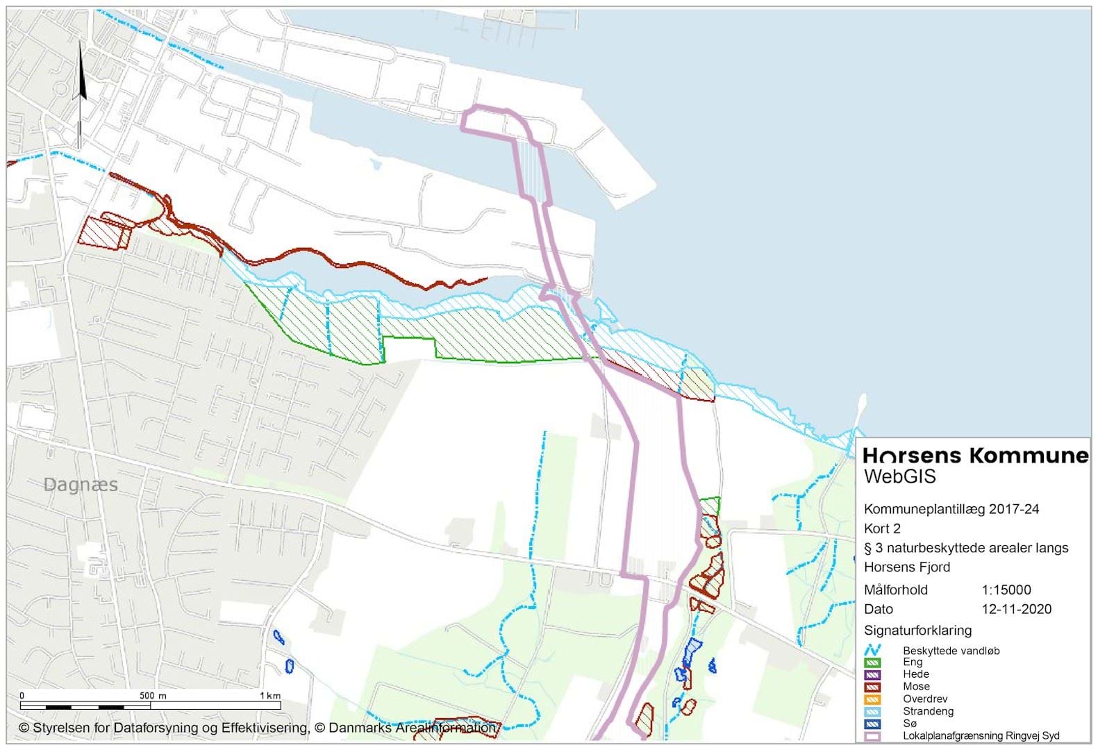 Arealerne ved Dagnæs Bæk´s udløb er i kommuneplanen udpeget som "Lavbundsarealer der kan genoprettes" Ringvejsprojektet forløber gennem udpegede arealer.