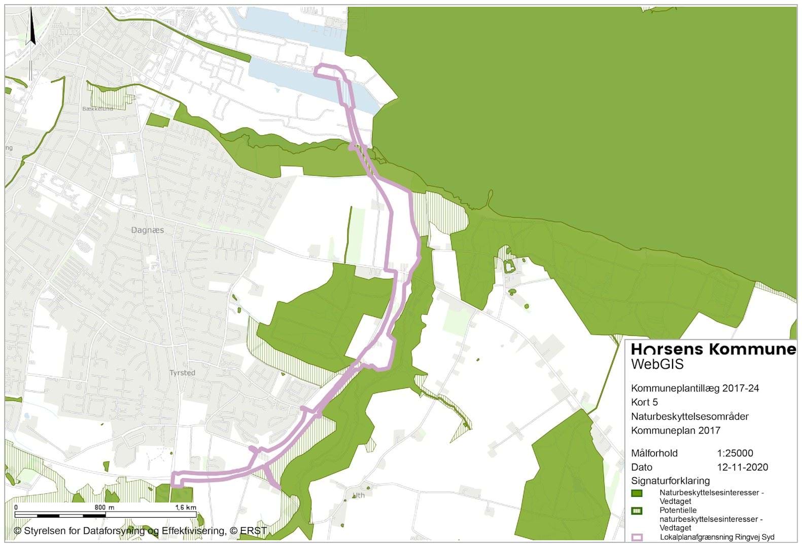 Alene på baggrund af den store afstand til det internationale naturbeskyttelsesområde er det Horsens Kommunes vurdering, at det kan udelukkes, at anlæggelse af en ny ringvej kan skade arter eller naturtyper, som udgør udpegningsgrundlaget for Natura 2000-området.
