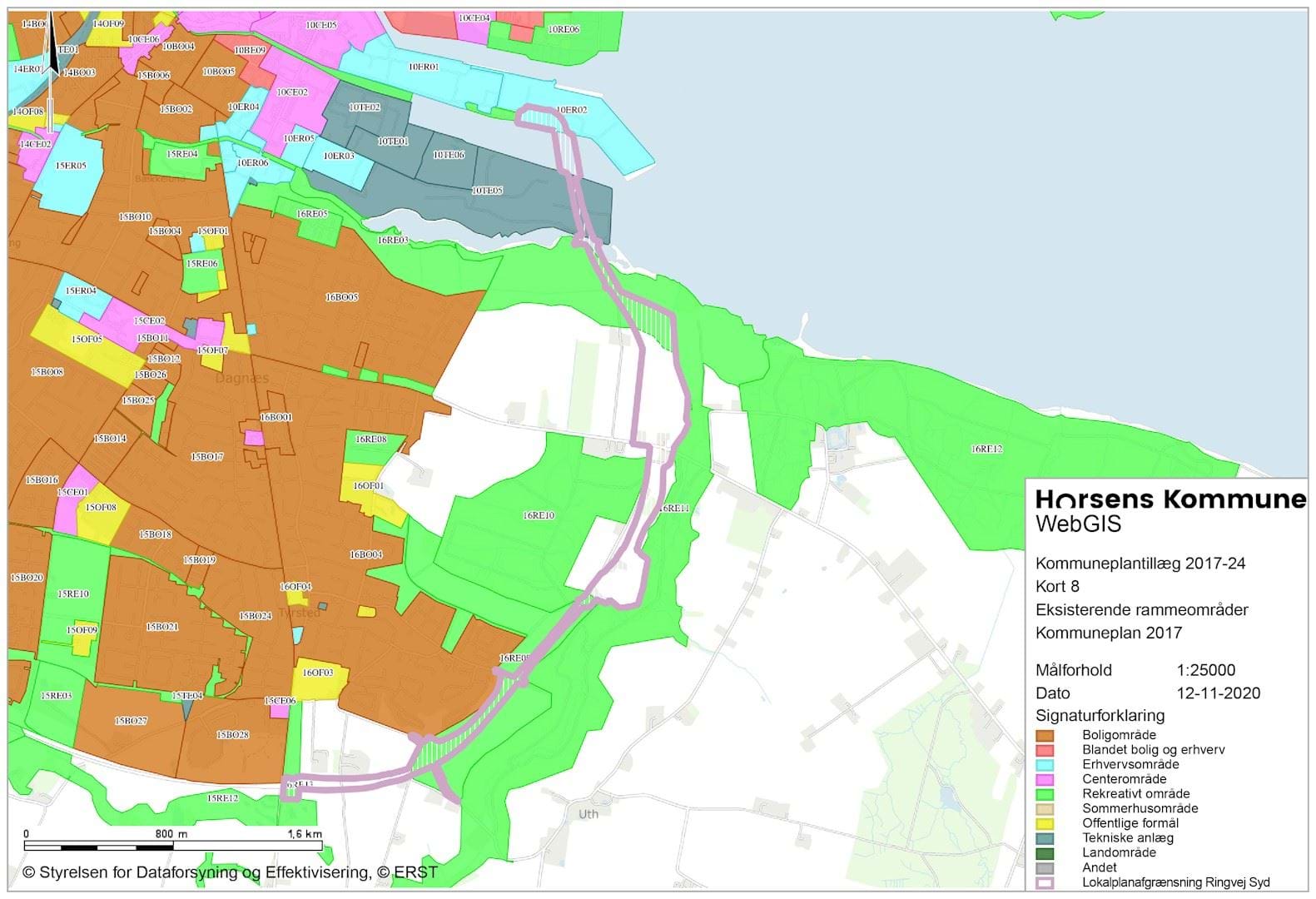 I Horsens Kommuneplan 2017 er størstedelen af planområdet rammelagt (se kort 8). Derudover berører planlægningen en række rammer som omfatter større arealer end planområdet.